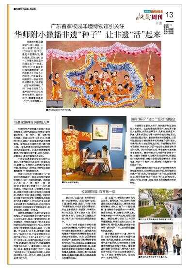 广东首家校园非遗博物馆引关注 ■收藏周刊记者 梁志钦 华南师大附小继创设“一班一特色,一班一非遗”之后,于2020年12月27日,建起非遗博物馆,藏纳经典,实现馆校合一。尽管从建立至