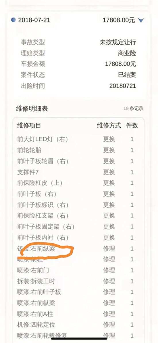 ■赵先生通过4S店查询到他的车曾经维修过的部位可以认定为事故车。 |