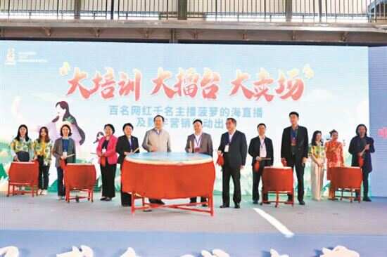 新快报讯 记者高镛舒 通讯员粤农轩报道 2022年广东“菠萝的海”百千田头直播开锣暨全球采购商大会日前在徐闻RCEP菠萝国际交易中心正式启动。来自全球各地的采购商、百名网红主播、菠萝供应商代表及菠萝种植、加工技术专家代表参会,“菠萝的海”里“网红+农民”千人田间直播带货让徐闻菠萝再次成为全网热点。 徐闻被誉为“中国菠萝之乡”,是我国最大的菠萝种植优势区,其菠萝种植面积达35万亩,年产量稳定在70万吨,全国每三个菠萝就有一个来自徐闻,万亩连片菠萝地被誉为“菠萝的海”。徐闻菠萝被认定为中国“国家地理标志保护产品”,入选中国名特优新农产品名录。
