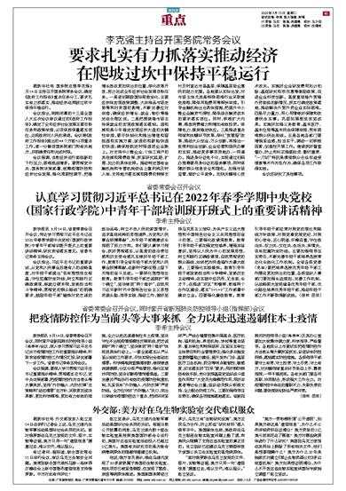 李克强主持召开国务院常务会议 据新华社电 国务院总理李克强3月14日主持召开国务院常务会议,确定《政府工作报告》重点任务分工,要求扎实有力抓落实,推动经济在爬坡过坎中保持平稳运行。