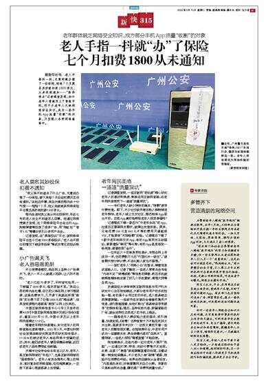 老人手指一抖就“办”了保险 七个月扣费1800从未通知