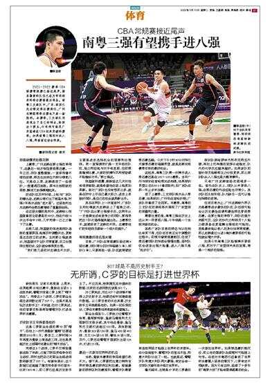 CBA常规赛接近尾声 2021-2022赛季CBA联赛常规赛已接近尾声,排名靠前的队伍已在为即将到来的季后赛做最后准备。南粤三支球队中,广东、深圳已先后锁定季后赛席位,广州龙狮距离季后赛也