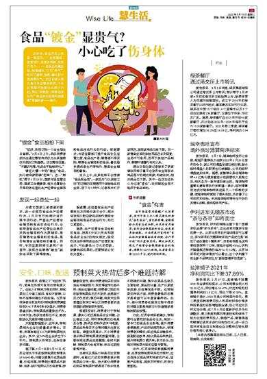 近年来,食品市场上刮起一阵歪风——金箔蛋糕、金箔茶叶、金箔冰淇淋、金箔巧克力……一些食品包裹金箔,制造噱头,以充“贵气”,助长了虚荣、浪费、攀比的不良消费风气。近日记者从湖北省市场监管局获悉,今