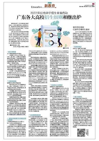 2022年综合评价招生全面启动 新高考改革下,作为高校招生重要途经之一的综合测评招生,备受考生关注。随着多所在粤招生高校陆续发布2022年综合评价招生简章,广东的综合评价招生已全面启动。