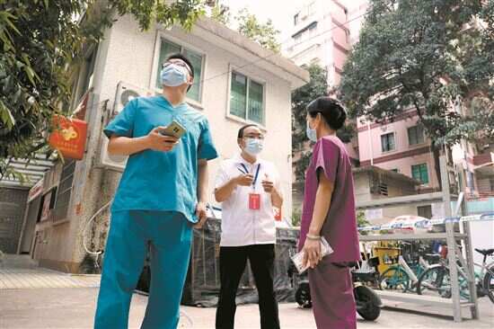 近日,广州出现散发新冠确诊病例。越秀、海珠、白云、天河、黄埔等区域精准划出封控区、管控区、防范区,实施区域分级分类管控。核酸检测、物资递送、医疗保障、岗点巡查……疫情当前,有这么一群人,不分昼夜,坚守在防疫一线,守护羊城安全。 广州市海珠区穗花新村广场,茂盛的大榕树撑起了一片片绿荫,一株木棉一枝独秀,枝头的花朵热烈绽放。绿荫下,是由一顶顶蓝色帐篷组建而成的核酸采集点,小区居民们有序排着队,淡定地等待核酸检测。一星期前,发现一名外地来穗确诊病例,这里立刻实施分级分类管控,核酸检测成为居民生活日常。 一周前,海珠区穗花新村出现了病例,但由于疫情防控得当,目前这里的生活正慢慢重回正轨。防范区的居民除了每日检测核酸外,生活并没有受到太多的影响,每天锻炼健身、打乒乓球、散步遛狗…… “3月11日,我们接报一名外地来穗人员核酸初筛阳性,连夜采取管控措施,次日凌晨将判定为密接的人员(封控区人员)全部转运走。”广州海珠区昌岗街道纪工委书记徐浩介绍,出现疫情后,迅速成立了昌岗街道穗花北社区封控管控工作专班,下设医疗服务组、现场处置组、安全保障组、组织人事组、三人专项组、综合协调组、居民服务组、环卫消杀组8个小组,约80人全力投入到疫情防控保障工作中。 穗花北社区管控区共有5栋居民楼,约有350户、800多人,目前实施“足不出区、错峰取物、核酸14天6检”措施。3月17日,记者到达管控区门口时,只见工作人员正忙着从快递小哥手中接过快递,做好人员信息登记,并将快递一件件地进行消毒处理。不远处,管控区内负责接应物资的工作人员站守在门口,把物资和快递整齐地摆在临时搭建的货架上,方便区内居民自行认领。如果家里有行动不便的,他们便穿着防护服,爬楼送上门。 物资保障跟上了,医疗保障也没落下。来自昌岗街社区卫生服务中心的9名医护人员,有全科医生、心理医生、药师,其中3名还是星级家庭医生,组成管控区医疗保障组,与居民共同建立了“温馨家庭医生群”,“谁有医疗需求,在群里招呼一声就好。”管控区医疗保障组长叶德意说。 管控区内有一名肾衰竭患者,一周需要3次血液透析。由于情况特殊,医院只能安排在晚上单独做透析治疗。医护人员联系转运组,把病人送到定点医院做完透析再送回来,到家已是深夜。 “苦肯定是苦,但特殊时期,作为医务工作者,冲在一线是我们的职责所在,希望疫情能够早日过去,那时候再回家好好洗个澡,休息一下。”叶德意笑着说。 此时此刻,广州抗疫一线的工作人员们,正奋战在每一个平凡岗位上,守护着这一座城的平安。 ■摄影:新快报记者 夏世焱 撰文:新快报记者 黄闻禹