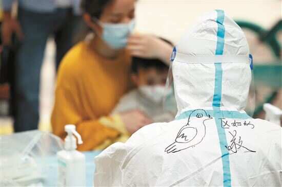 一名医务人员特意在防护服上画了一只小鸟的图案,她说希望看见小鸟的人都心情放松,特别是社区里的小朋友们,希望他们都能乖乖地,一起面对疫情的考验。 |