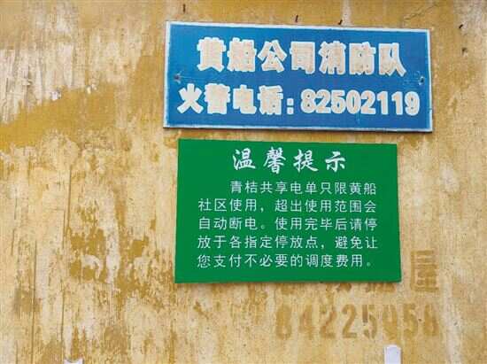 ■黄埔区黄船社区青桔共享电单停车点张贴的“温馨提示”。 |