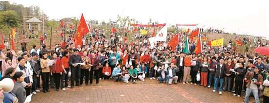 ■15年前,1500多名老知青在广州市白云区石马桃花公园组织“大会战”,植下知青林。 |