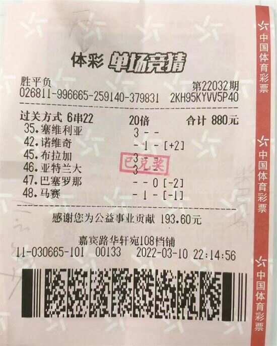 新快报讯 记者陆妍思 通讯员惠州体彩报道 3月11日,区域联网单场竞猜游戏第22032期开奖,惠州市博罗县罗阳街道嘉宾路华轩宛108号商铺的4411030665实体店中出大奖,幸运儿王先生(化姓)凭借10张50倍6串1彩票和1张20倍6串22彩票,收获总奖金139万元。 中奖者王先生是一位不折不扣的球迷,平时喜欢关注足球比赛,同时也经常购买足球彩票,对区域联网单场竞猜游戏更是情有独钟。这次命中大奖,王先生选择了他所看好的欧罗巴联赛和英超等6场足球比赛,并投注了其中4场冷门赛果,分6串1和6串22两种胜平负过关方式进行倍投,结果这6场比赛全中,从而摘得高额奖金。 访谈中,王先生分享了自己的购彩心得:北京单场竞猜足球场次多,奖金不固定,也就蕴含更大惊喜的可能性,而且4场串关以上的过关方式奖金成色更高,非常适合高串容错玩法。当然,购彩者也需要保持平常心,切忌盲目大额投注,一定要量力而行。王先生还说:“我非常喜欢足球彩票带来的趣味性,而且知道中国体育彩票是国家公益彩票,以后会继续购买体彩,为社会公益贡献绵力。” 公益体彩,乐善人生。惠州体彩相关负责人表示,近年来,惠州市的体育事业发展得越来越好,很大部分得益于体彩公益金的支持。社会发展的方方面面都能看到体彩公益金的身影,这背后也离不开每一位购彩者的支持。