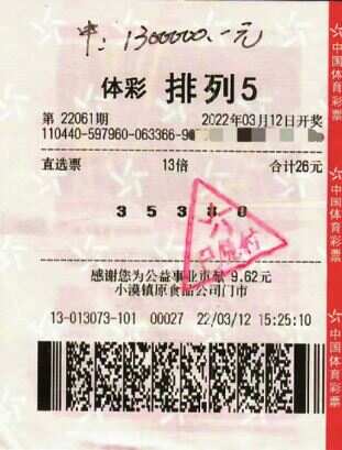 新快报讯 记者陆妍思 通讯员汕尾体彩报道 排列5第22061期开奖,开奖号码为“35380”,位于汕尾小漠镇原食品公司门市的4413013073体彩实体店传出喜讯,一名购彩者凭借投注额26元的13倍直选票,喜获排列5大奖130万元,为汕尾贡献税收26万元。有趣的是,他选号采取“年龄+生日”的方式。 中奖者陈先生(化名)接触体育彩票已有21年,是体彩的粉丝。众多游戏中,他尤其偏爱超级大乐透游戏,偶尔还会投注排列游戏,一般是投注自己钟意的号码。 开奖当天,陈先生心血来潮,想着今年自己35岁,生日为3月8日,便用这几个数字组成投注号码,于是就有了“35380”这注幸运号码,而采用倍投的方式,更是让陈先生收获了加倍的幸运。陈先生表示这是自己第一次中大奖,当晚开奖结果出来后,他有一种鸿运天降的感觉。 陈先生是一位外来务工者,在汕尾的工作差不多结束了,近期打算回老家,这笔奖金正好可为他回乡发展助一臂之力。他直呼汕尾是自己的宝地,并表示以后无论在哪里生活,都会一如既往地支持中国体育彩票,为国家公益事业贡献出自己的力量。