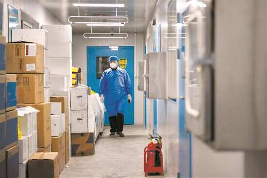 ■某医院工作人员在查看药物储备情况。新华社发 |
