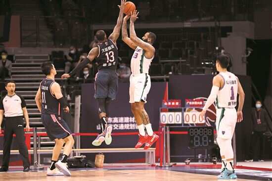 ■本赛季常规赛最后一轮,广东队加时不敌山东队。 VCG图 |