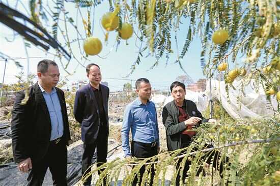 汕头市潮阳区关埠镇想方设法鼓足农民腰包的同时,也不落下对村居环境的整治提升 个头有乒乓球大小的透绿油柑果实挂在枝头上,黄美生头头是道地讲解着这“绿园一号”的不同,“极大改善了油柑的酸涩口感,更适合做鲜果食用了。”这片500多亩的油柑种植基地,正是汕头市潮阳区关埠镇打造“生态小果园”的“首发”之选,“借助龙头企业的示范作用,引导农民利用好现有果园、边角地等土地,引入适宜的效益较高的种植品种,改善农业种植结构,增加收益。” 想方设法鼓足农民腰包的同时,关埠镇也不落下对村居环境的整治提升。河腰村在近两年也崭露出头角:文化长廊展现草席的传统制作工艺,“四小园”透露村民的巧妙构思,小桥流水勾勒清新宜居乡村画卷……以河腰村为风貌提升点,关埠镇也以点带面加大乡村风貌改善提升力度,推动宜居宜业乡村打造。 种油柑果 生态小果园探索高效益种植 黄美生是关埠人,其经营的绿生果园有限公司此前主要以蕉柑的种植销售为主,然而近几年受到市场行情、病虫害等影响,蕉柑效益逐渐大不如前,原本一些散种农户的信心也慢慢不足。黄美生在愁虑转型之时,原本只是小打小闹种植的油柑却迎来了市场“爆发期”。 原来,绿生公司已经拥有十多年的油柑种植经验,“油柑一直是潮汕群众喜爱的特色水果之一,近几年受网红奶茶的影响,成了市场上的‘紧俏货’。”早前,黄美生便引进了国外的油柑种苗进行培育改造,一直探索相关种植技术。遇上新机遇,他摩拳擦掌,直言“我对油柑有很大信心。” 黄美生的转型思路与关埠镇不谋而合。 关埠镇二级主任科员黄武强提到,关埠镇基本农田占比高且人均耕地面积不大,多数农民实际较少参与耕种、土地收益不高。但关埠作为农业镇,水土气候条件优越,四季均能产应季水果,位于咸淡水交界处还具备了进行有机生态种植的有利条件。在巩固提升水稻种植传统优势的基础上,关埠镇提出了“生态小果园”的理念,“积极利用现有果园、边角地、一般耕地等土地资源,引导农民种植适宜当地、收益较高的品种,以增加农民收入。” 油柑便是他们打造生态小果园的切入点。 桥头村的果园里,一人高的油柑树枝头已经挂上了乒乓球大小的油柑果实,在阳光下玲珑剔透,泛着嫩绿。黄美生神情飞扬介绍道,他们嫁接培育的“绿园一号”,“除了个头大,也降低了酸涩度,口感较常见的油柑更好了,美中不足的是目前的纤维含量还是太高。”目前,绿生公司的350多亩基地里都种上了油柑,还带动了10多户农户种植,不久前还刚组织了一场技术培训,提到油柑的种植管护,黄美生便滔滔不绝。实际上,由省委统战部牵头、省交通集团等单位组成的驻关埠镇帮镇扶村工作队进驻后,也积极协调韩山师范学院科技特派员团队支持绿生公司,他们还围绕关埠绿色生态农业发展,三方协同成立了现代农业生态小果园发展研究中心。 驻关埠镇工作队队长刘伟提到,他们将以绿生果园为试验基地,依据绿色生态的总要求,探索包括栽培技术、产品标准、生产经营体系、技术培训等在内的现代果园种植经营模式,带动更多农户用好“边角地”种植油柑、番石榴、桑葚等特色水果,标准化、规模化、体系化地联动打造关埠绿色生态小果园品牌。 创美乡村 小桥流水人家显河腰婀娜 从田间果园转入村庄聚落,穿过河腰村村口,新快报记者被一墙的彩绘吸引住:从田地里生长着的绿挺挺植物,到它们被割下、晾晒干,再是三五成群的村民坐在小凳子上弯腰编织……这文化长廊的开篇,讲述的便是河腰村的传统草席制作工艺。河腰村委副主任徐俊锐说,如今村里还有些老人家掌握这传统的制作工艺,村里的一些妇女也在席厂里工作。 距离河腰村新桥路不远,一间厂房安立于农田边上,传出阵阵机器运作声,屋内晒干的咸水草、大体成型的草席等各自安放。一位五六十岁的妇女正在整理机器上的咸水草,同时照看着两三台机器,另外几个年纪与她差不多的妇女正坐在小板凳上,耐心梳理草席“线头”。厂子由河腰村民所建,徐俊锐说,这两年行情不好,但村里也还有十多人在席厂工作,多是留守村中的妇女。 河腰村常住一千多人,河流蜿蜒老寨而过,寨内还保存着50多座老宅,原已多破损倒塌。这两年借着被列入第二批美丽乡村示范村建设的机遇,河腰村对老寨进行了修缮改造,拆除危房建起“四小园”,古老寨屋重焕生机。此外,河腰村也一并疏浚了村边河道、硬底化村子道路、栽花种草……漫步老寨边,左有文化长廊相伴,右是碧水袅袅细柳微飘。徐俊锐提到,村民们一听说进行村容村貌整治提升,都十分配合,能出力的出力、该让地的让地,“现在看着村里的新变化,乡亲们特别满意。” 老宅前,或圆或扁的手工面条被安置在竹编簸箕里,在这春日里静享明媚阳光。屋子里,年逾古稀的徐伯和老伴忙忙碌碌,进门处堆放着做面条用的面粉鸡蛋,“都是我们两个纯手工做的,做了30多年了。”靠着这一团团面条,老两口把孩子养大,如今儿女都已工作,徐伯徐母也闲不下来,依旧操持着。村里这两年变靓了,不少人来游玩罢也会从他们这儿带走些面条。河腰村民多以种水稻和咸水草为主,也有人家流转田地种起四季水果,村委们想着先继续完善村貌提升,做好美丽乡村建设二期项目,打好基础后尝试探索乡村旅游。 实际上,潮阳区已将包括