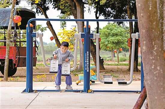 ■内角村内,珠海消防救援支队自筹8万多元装上健身器材。 |