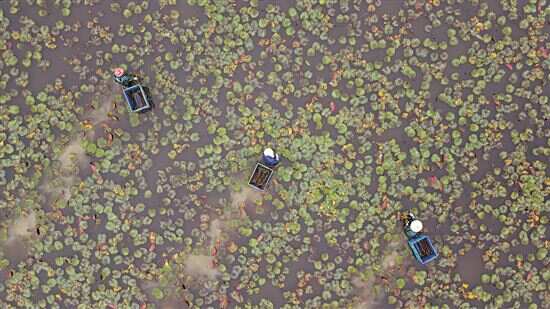 ■合山镇丰垌村,妇女在千亩睡莲基地采摘睡莲。 |