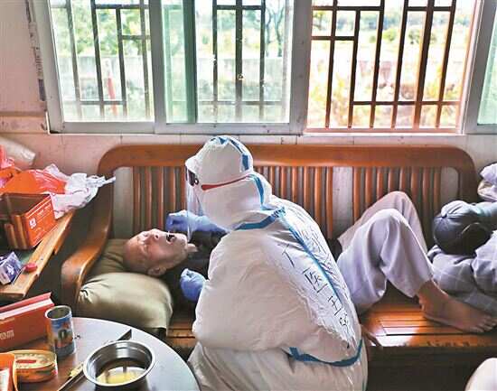 ■邬丽满带着医疗设备上门给行动不便的老人家做核酸检测。 |