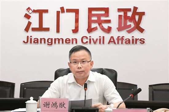 ■江门市民政局党组书记、局长谢鸿猷讲话。 |