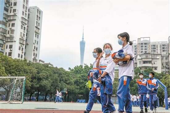 4月20日,位于海珠区的广州市景中实验中学里,多日未见面的同学聚在一起聊天。当天,广州全市中学阶段学校(白云区除外)有序恢复线下教学。