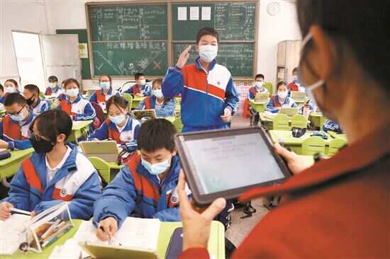 ■老师用平板授课,在家学生也能通过直播实时互动,保证没有一名学生掉队。 |