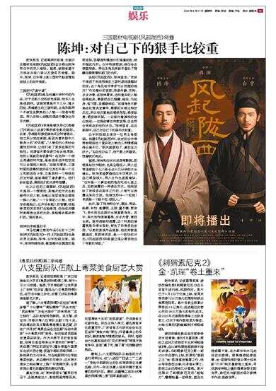 三国题材电视剧《风起陇西》将播 新快报讯 记者梁燕芬报道 古装历史题材电视剧《风起陇西》近日释出陈坤和白宇的双人海报。据悉,该剧有望于月底在央视八套以及爱奇艺首播。剧中,陈坤、白宇将上演三
