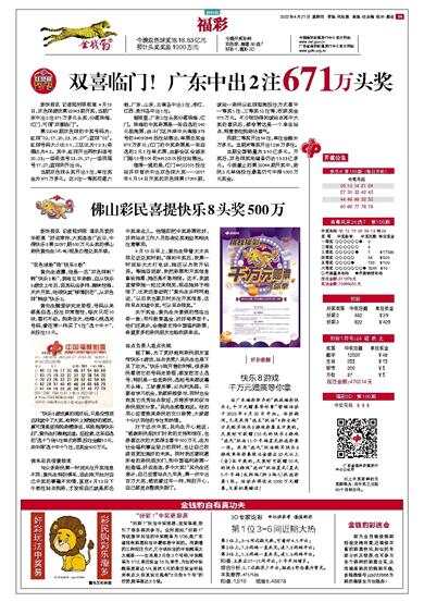 新快报讯 记者陆妍思报道 4月19日,双色球游戏第22043期开奖,当期广东中出2注671万多元头奖,分落珠海、江门,可谓“双喜临门”。 第22043期双色球的中奖号码为:红球“02、17