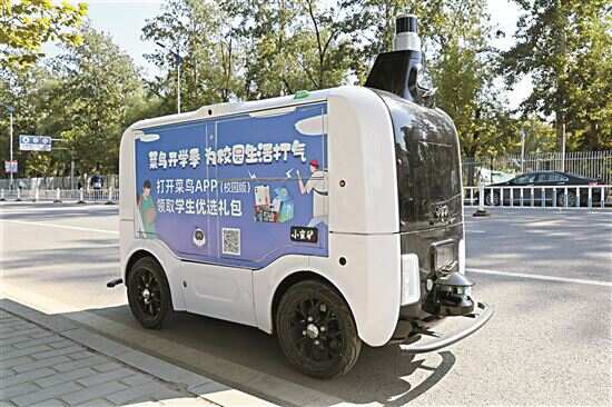 ■菜鸟小蛮驴无人车在北京校园里执行包裹无接触配送任务 |