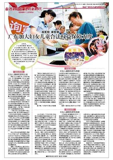 出实招 谋实效 五年来,广东紧紧围绕“建设成为全国最安全稳定、最公平公正、法治环境最好的地区之一”的目标,依法优先保护妇女儿童等群体合法权益,推动妇女儿童维权工作不断取得新突破,赢得新实效