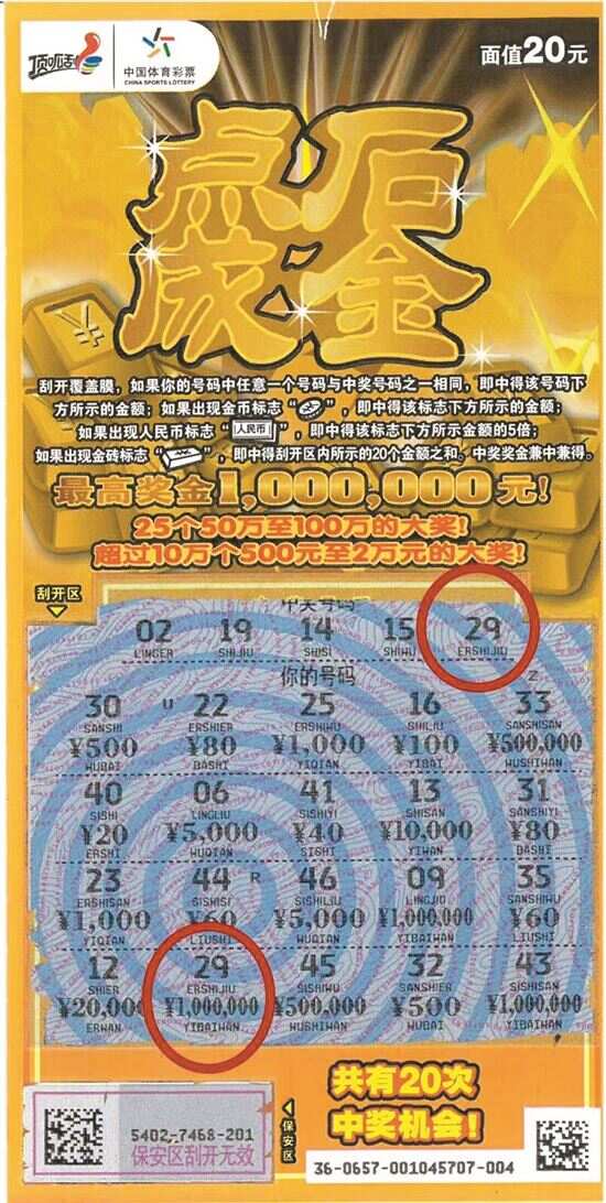 新快报讯 记者陆妍思 通讯员粤体彩报道 近日,广东频现顶呱刮大奖,继惠州爆出“超级加倍”50万元后,佛山顺德又有一位购彩者中得“点石成金”100万元大奖。 “点石成金”100万元得主:奖金作买房首付 据了解,广东顺德伦教的梁先生(化姓)在北滘镇新业四路2号之6号铺的4422022376体彩实体店购买的一张面值20元的“点石成金”即开票幸运中出100万元大奖,为当地贡献个人偶然所得税20万元。 中奖当天,梁先生是去买超级大乐透的,顺手买了几张顶呱刮即开票,没想到抢闸中得大奖。他买体彩大概有3年了:“生活处处是惊喜,体彩给了我一个大大的惊喜,这笔钱我打算当作买房子的首付,今后会继续坚持买体育彩票,不光为了中奖,也为了体彩公益事业!” “超级加倍”50万元得主:理性购彩幸运中奖 而惠州的面值10元“超级加倍”50万元大奖则出自博罗县罗阳街道小金村戴屋小组12号4411032216体彩实体店,由该店购彩者黄先生(化姓)中得。 中奖当天,黄先生一如既往地进店购彩,在一包已拆开的“超级加倍”即开票中随手挑选了2张,没想到其中一张就刮出了头奖,他非常开心。在业主的指引下,当天下午,黄先生火速现身惠州体彩中心领取奖金,贡献个人偶然所得税10万元。 出奖实体店业主介绍道:“黄先生经常来店里购彩,每次消费都不高,大概三四十块,非常理性,在这之前黄先生也中过一些小奖,这次能中大奖,真是替他感到开心!” 黄先生也表示,购彩不只是自己的业余爱好,还是一种公益行为,在此他呼吁广大购彩者坚持公益,理性购彩,量力而行。