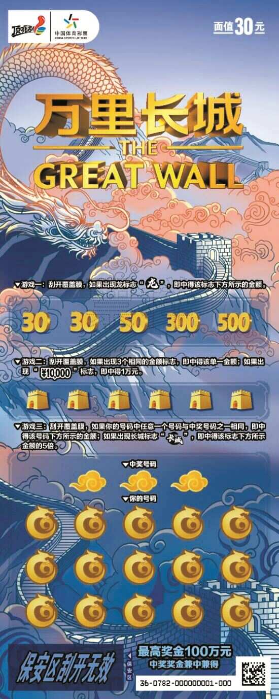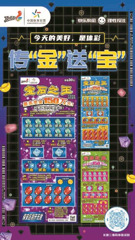 新快报讯 记者陆妍思报道 顶呱刮即开型体育彩票一向以即开即中、玩法多样受到购彩者的喜爱。近日,顶呱刮体彩即开票继续上新,包括“宝石之王”和“万里长城”。 “宝石之王”:经典票种再推新成员 2011年发行的“宝石之王”作为顶呱刮第一款30元面值的即开票,其头奖为150万元创下市场新纪录。11年之后,体彩上新5元、10元面值的“宝石之王”新票,打造又一款精彩的家族游戏。两款面值的“宝石之王”都分别有3个场景票面“紫”“绿”“蓝”三款经典颜色。 5元面值的有8次中奖机会,最高奖金50万元,游戏玩法以找中奖符号为主,具体有3个游戏玩法。游戏1:刮开覆盖膜,如果出现“¥50元”标志即中得50元;游戏2:刮开覆盖膜,如果出现“¥100元”标志即中得100元;游戏3:刮开覆盖膜,如果出现钻戒标志即中得该标志下方所示的奖金金额,如果出现王冠标志即中得该标志下方所示奖金金额的两倍,中奖奖金兼中兼得。 面值10元的有16次中奖机会,最高奖金100万元,采用“找中奖符号+两同+数字匹配”4个游戏玩法。游戏1:刮开覆盖膜,如果出现“¥50元”标志即中得50元;游戏2:刮开覆盖膜,如果出现“¥100元”标志即中得100元;游戏3:刮开覆盖膜,如果在任意一局游戏中出现两个相同的标志即中得该局游戏下方所示的奖金金额;游戏4:刮开覆盖膜,如果你的号码中任意一个号码与中奖号码之一相同即中得该号码下方所示的金额。中奖奖金兼中兼得。 “万里长城”:世界文化遗产登上票面 顶呱刮推出世界文化遗产主题即开票“万里长城”。此次体彩以长城作为票面主体形象,以祥云纹传递吉祥、喜庆、祝福。 “万里长城”面值30元,共有22次中奖机会,最高奖金100万元。游戏规则为,游戏一:刮开覆盖膜,如果出现“龙”标志即中得该标志下方所示的金额;游戏二:刮开覆盖膜,如果出现3个相同的金额标志,即中得该单一金额。如果出现“¥10000”标志,即中得1万元;游戏三:刮开覆盖膜,如果你的号码中任意一个号码与中奖号码之一相同,即中得该号码下方所示的金额,如果出现长城标志即中得该标志下方所示金额的5倍,中奖奖金兼中兼得。