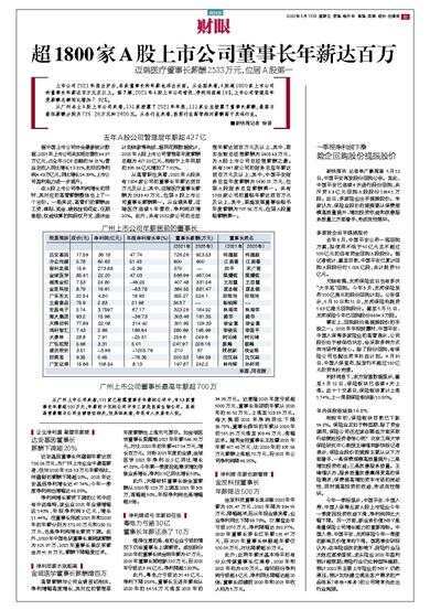 迈瑞医疗董事长薪酬2533万元,位居A股第一 上市公司2021年报出炉后,各家董事长的年薪也浮出水面。从全国来看,A股超1800家上市公司的董事长年薪达百万元及以上。据了解,2021年A股