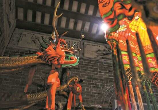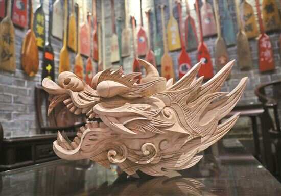 ■一个龙头里,藏着一个村的故事。龙头和龙尾被尊为龙舟的“灵魂”,是可拆卸的独立部件,常年放在祠堂进行供奉,端午前才会“请”出来镶嵌在龙舟上。 |