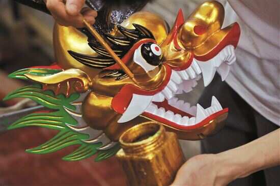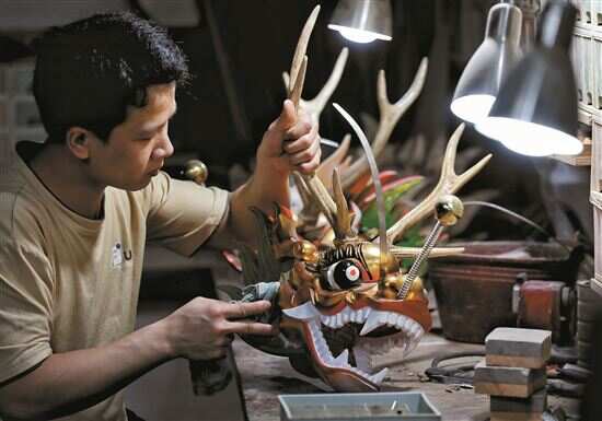 ■张伟潮是广州城内为数不多的手工龙头制作者之一,他非常注重传统文化,每做一个龙头都会先去了解每个村的信仰和历史,经他手做出来的龙头不会“撞脸”。 |