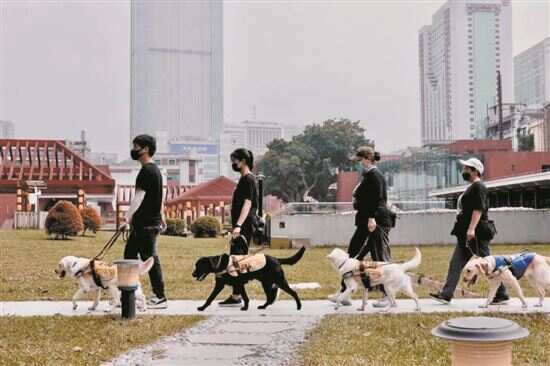 ■导盲犬在王墓展区进行训练。 |