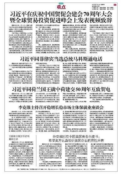 习近平在庆祝中国贸促会建会70周年大会 暨全球贸易投资促进峰会上发表视频致辞