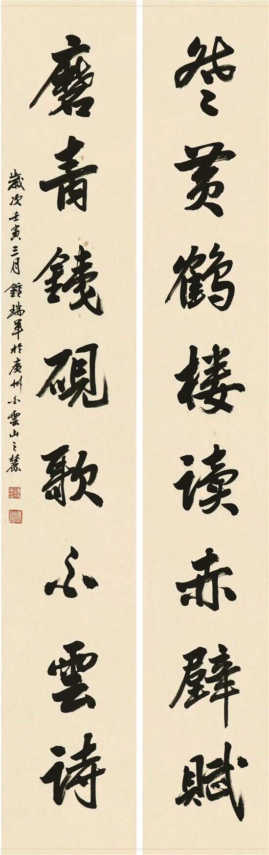■钟瑞军《登黄磨青八言联》 释文:登黄鹤楼读赤壁赋;磨青铁砚歌白云诗。 |