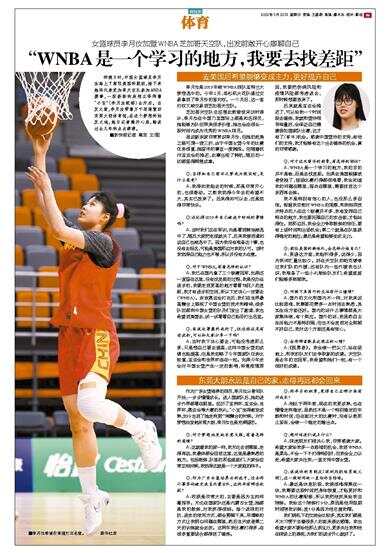 “WNBA是一个学习的地方,我要去找差距”