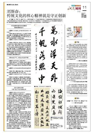 在“读懂广州 书写广州 建设广州——榜书作品展”上,广东省文联原主席、广东画院原院长刘斯奋的作品《万水千帆五言联》是明代区大相羊城八景句内容:“万水浮天外;千帆落照中。”三米多高的作品,无不彰显