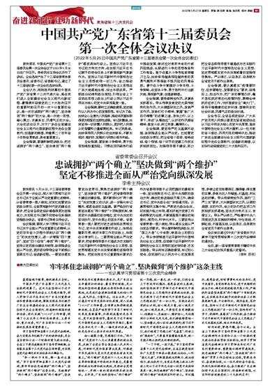 (2022年5月26日中国共产党广东省第十三届委员会第一次全体会议通过) 新快报讯 中国共产党广东省第十三届委员会第一次全体会议于2022年5月26日在广州召开。李希同志主持会议并作了讲话