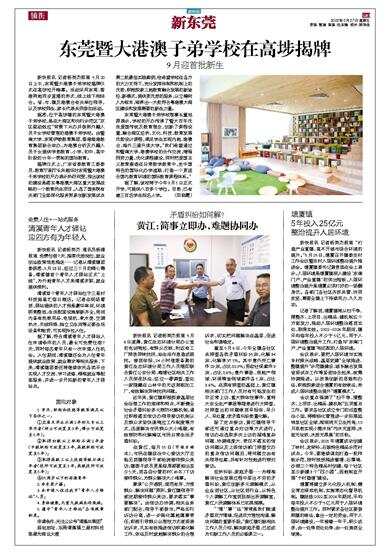 9月迎首批新生 新快报讯 记者杨英杰报道 5月20日上午,东莞暨大港澳子弟学校揭牌仪式在高埗拉开帷幕。活动采用东莞、香港两地同步直播的形式,线上线下相结合。省、市、镇及港澳台有关单位领导,