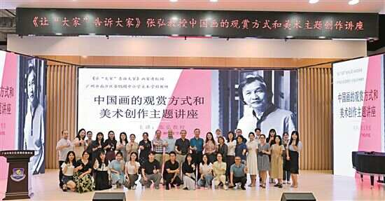 为将传统文化融入南沙区文化建设,在广州文学艺术界联合会指导下,广州市南沙区文学艺术界联合会、广州文艺志愿者协会、广州市南沙区教育发展中心、广州市南沙区教师发展中心、广州市南沙区书法美术家协会主办的《让“大家”告诉大家》文化惠民南沙行——张弘中国画的观赏方式和美术创作主题讲座,于2022年5月27日下午,在南沙区广外滨海实验学校举行。 主讲人张弘,现为广州美院教授、硕士研究生导师、中国美术家协会会员、广州市美术家协会副主席、广东省政协书画院副院长。长期从事中国画教学与创作,先后荣获广东省“南粤教坛新秀”奖、省“南粤优秀美术教师”称号、广州美院“教学名师”称号。作品多次参加国家级别的大型美术作品展览并获奖,其中,国画作品《合作的春天——亚投行在北京开业》在庆祝中国共产党建党百年“红船颂”全国美术精品创作工程作品展成为参展的百幅精品力作之一,并由南湖革命纪念馆收藏。 什么是中国画?如何看懂中国画?如何从中国画优秀作品中,捕捉、感悟画家所要传达的思想和情绪?张弘通过大量的图像资料、生动有趣的画风,结合本人教学创作实践心得,从传统中国画艺术的欣赏出发,对中国画独特的美学性格和艺术表现形式进行了精彩讲述。 美术爱好者如何进行创作?张弘在创作中坚持“扎根人民、扎根生活、坚持以人民为中心的创作导向”。他说:“画家进行艺术创作,时刻保持与生活的‘在线’状态非常重要。以画笔记录生活、表现重大事件,是艺术家应有的担当,也是艺术家的一种天职与情怀。要创作出打动别人的作品,艺术家首先要受到感动。”张弘教授所创作的以“广州市民配合医务人员排队进行核酸检测”为题材的人物速写作品,以水墨为主旋律,水墨酣畅,造型独特,受到市民高度赞扬和好评。(潘玮倩)