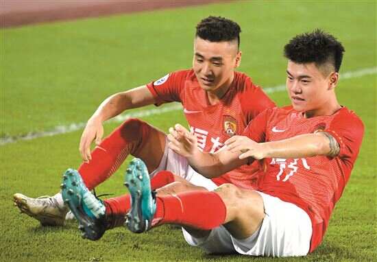 ■杨立瑜(右)与韦世豪已成为球队主心骨。 新华社资料图 |