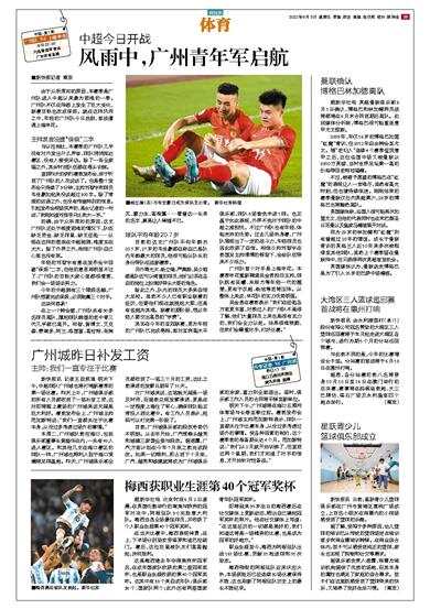 主帅:我们一直专注于比赛 新快报讯 记者王敌报道 明天下午,中超球队广州城也将打响新赛季的第一场比赛。昨天上午,广州城俱乐部的所有人员都收到了一笔补发工资,这对即将踏上赛场的广州城来说无疑