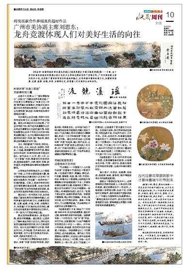 岭南画家合作多幅龙舟题材作品 《同法杯·岭南传统体育非遗龙舟卷》、《瑶溪竞渡》(手卷)《瑶溪竞渡》图……日前,由十多位岭南名家组成的雅集分别以龙舟为主要表达题材创作了多幅巨作,广州市美协副