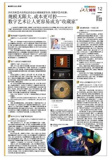 天和文化艺术交流促进会会长楼钢接受专访,谈数字艺术前景: 人人都有成为收藏家的潜质,而随着“元宇宙”概念的兴起和数字化艺术的繁盛,数字艺术品,使得“创作”与“收藏”,更加容易系统化、成本更