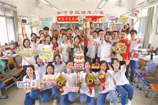 ■昨日,广大附中为即将赴考的高三学生上了一节考前动员课,老师和家长们准备了各式小礼物,为学生加油鼓劲。新快报记者 夏世焱/摄