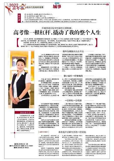 祈福英语实验学校副校长韩轶敏: 【校长们的高考故事】 开栏语 有人说,高考是一把钥匙,能打开不同世界的大门; 有人说,高考是杠杆,撬动了整个人生; 有人说,高考只是