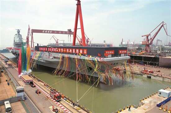 ■6月17日上午,我国第三艘航空母舰下水命名仪式在中国船舶集团有限公司江南造船厂举行。新华社发