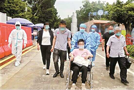 ■广州市救助站工作人员送别小徐和她的家人。 |