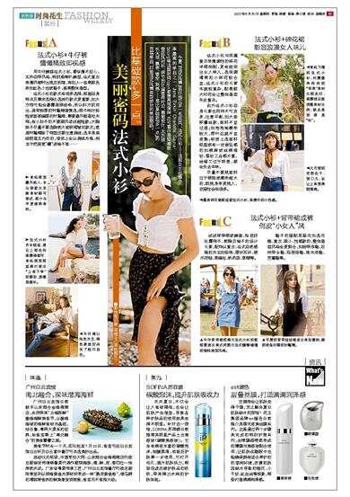 今夏,“法式风情”流行线又多一名成员:法式小衫——法国女士出镜率最高的单品之一,Jane Birkin、Charlotte Gainsbourg等法国时尚Icon都曾高频演绎,亦可看作是短袖版宫廷风衬衫,细节设计涵盖荷叶边、褶皱设计、大方领、长尖领、飘带、镂空、刺绣……是比基础款“多一点”的百搭单品,打造法式风情造型装扮的美丽密码。 ■新快报记者 梁彧/文(资料图片) Focus A 法式小衫+牛仔裤 慵懒精致即视感 用牛仔裤搭法式小衫,看似漫不经心,实则自带风格,特别是喇叭裤型,法式复古浪漫风顿时出挑且吸睛,再加入一些亮眼色彩如红色小包或鞋子,提亮整体造型。 法式小衫的款式有很多选择,根据自身特点及需求选择比选流行款式更重要,如大方领可能会暴露肩颈线条,所以斜方肌突出、肩背较厚的时髦精请慎选;脖子相对较短或面部偏圆的时髦精,需要避开超高拉夫领;有小肚子的不要跟风尝试超短款;大胸妹子尽量不要选胸前大面积褶皱的款式;宽肩时髦精除了领型还要注意肩线,选本身肩线明显且内收的,视觉上会以肩线为准,相当于把肩宽“藏”进袖子里…… Focus B 法式小衫+碎花裙 彰显浪漫女人味儿 法式小衫与同属复古浪漫调性的碎花半裙相配,更有效突出女人味儿,选低调清爽的小碎花较合宜,法式小衫的元素本就较复杂,配亮眼大印花会让整体造型失去重点。 此外法式小衫自身元素也同样不可贪多,注意平衡,如大面积蕾丝款,面料不宜过透;如泡泡袖廓形较大,荷叶边就不宜密集;材质上选面料轻盈或有一定垂坠感的如棉麻或丝棉混纺,雪纺工业感太重,丝缎又过于娇贵,都会失去本味。 尽量不要挑面料过于硬挺或廓形超大的,既挑身形更挑人,百搭性会低很多。 Focus C 法式小衫+背带裙或裤 俏皮“小女人”风 试试背带裙或裤装,恰到好处露领子、前胸及袖子的设计元素,配饰以复古、法式自然感强的为主如珍珠、圆环耳环、硬币项链、草编包、帆布袋、草帽等。 鞋子的搭配思路优先选优雅、复古、跟小、性感款的,整体造型风格会更契合,如细带凉鞋、后袢带女鞋、玛丽珍鞋、渔夫凉鞋、芭蕾鞋等。