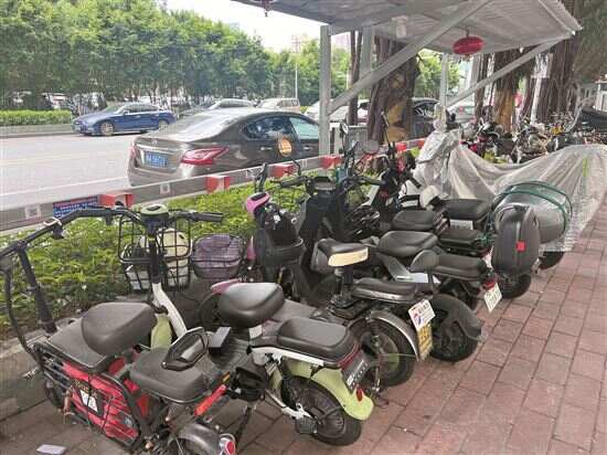 居民停放电动车,占用充电场所,这种现象很普遍。 |